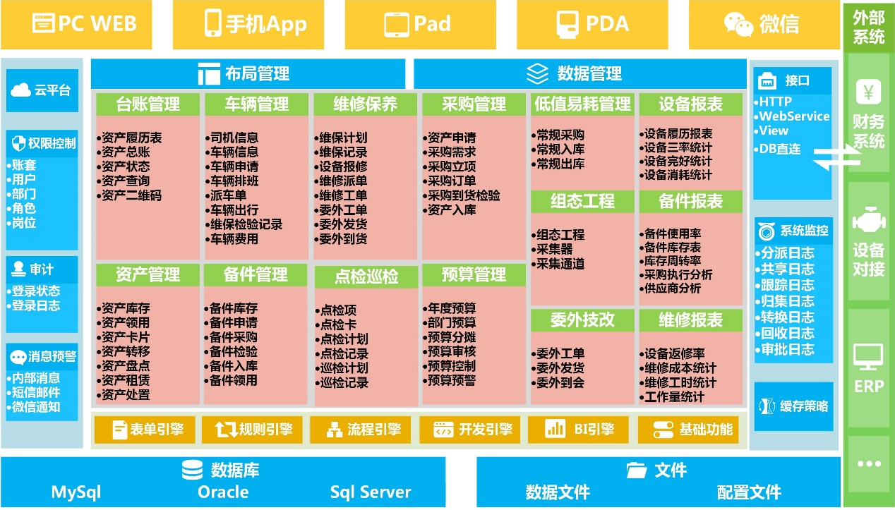 固定资产管理系统引入了“资产全生命周期管理”理念,涵盖固定资产、无形资产、低值易耗品三大类,通过资产台账、资产管理、维护保养、点检巡检、资产库存、资产采购、预算控制等十余个功能模块,把采、用、修、检、存、账全面的管理起来。以资产账卡为基础,以提升资产管理水平和绩效为目标,以资产业务为驱动,以智能决策为导向,提供科学合理的资产管理解决方案。覆盖固定资产、办公用品、采购、财务的全生命周期移动化、数字化管理,进而提高企业资产的有效利用率和使用价值。