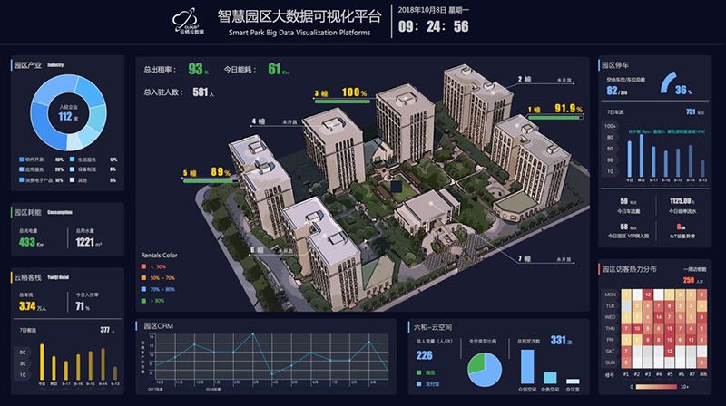 智慧园区可视化系统基于数字孪生的三维技术为基础,将人工智能、物联网(IOT)、大数据分析等新一代信息技术进行整合,通过可视化的管理方式,实时、动态、直观的对园区内建筑设备从宏观到微观进行全方位管理。